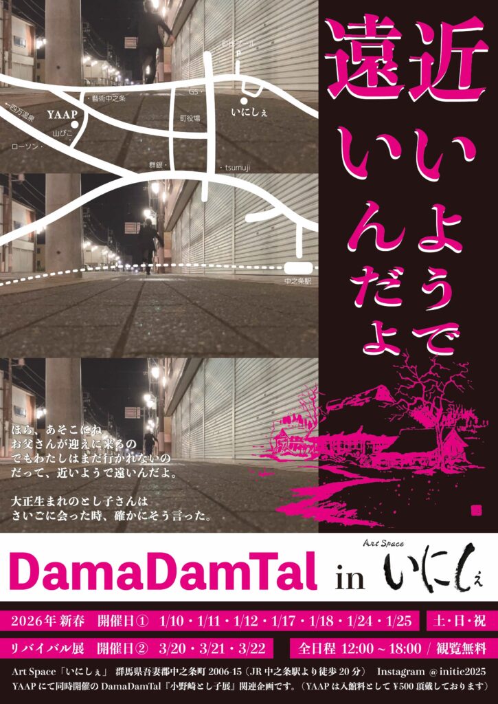 YAAPにて同時開催の DamaDamTal『小野崎とし子展」関連企画です。(YAAPは入館料¥500)